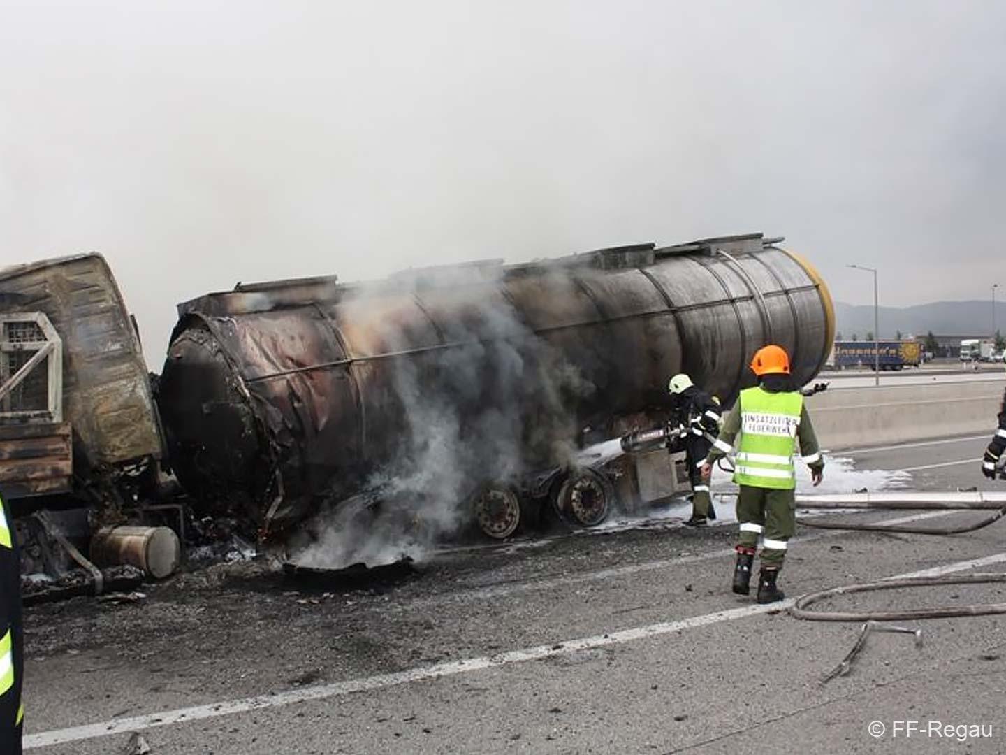 Verkehrsunfall eines Gefahrguttransporters auf der Westautobahn A1 mit tödlichem Ausgang.