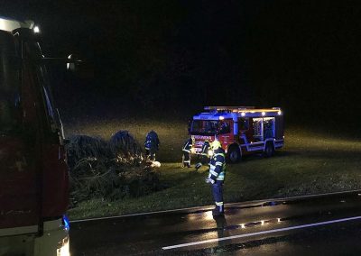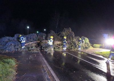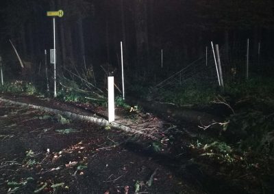 In der Ortschaft Roith fiel auch eine Stromleitung dem Sturm zum Opfer. Hier wurde in Absprache mit Bürgermeister, Polizei und Energieversorger beschlossen, die Straße gesperrt zu lassen, da die erforderlichen Arbeiten im Dunkeln nicht durchgeführt werden konnten.