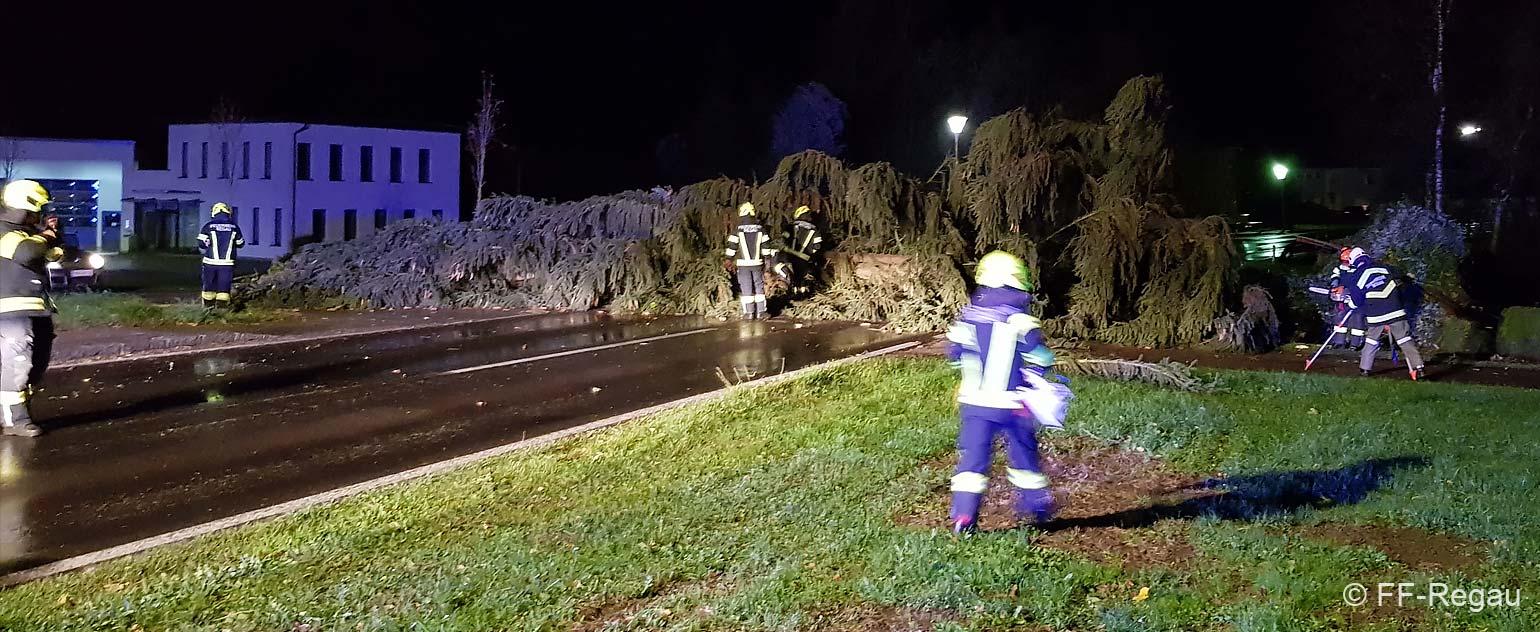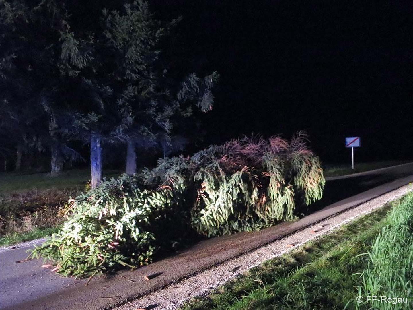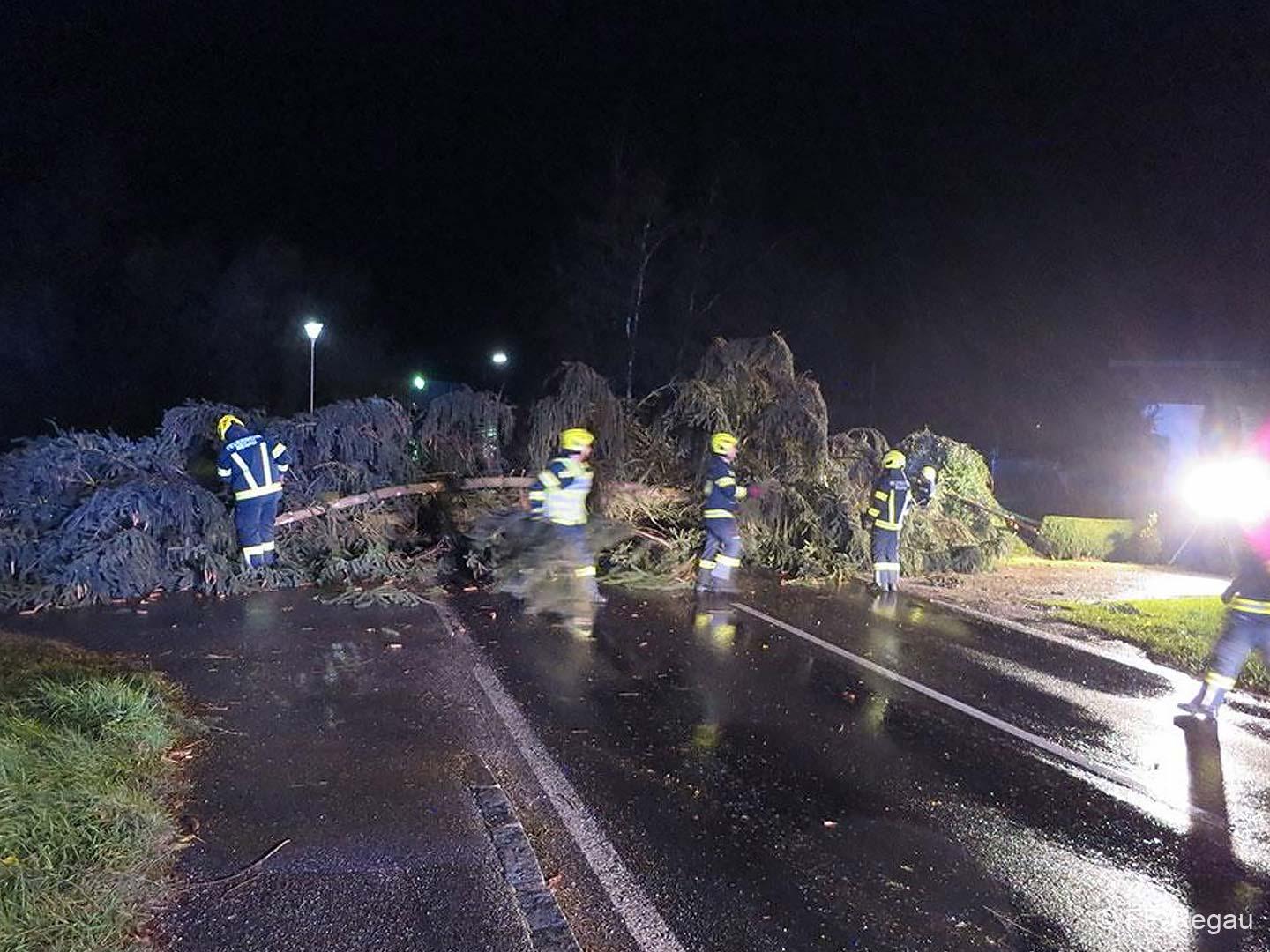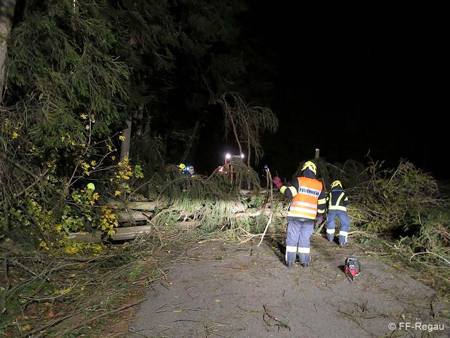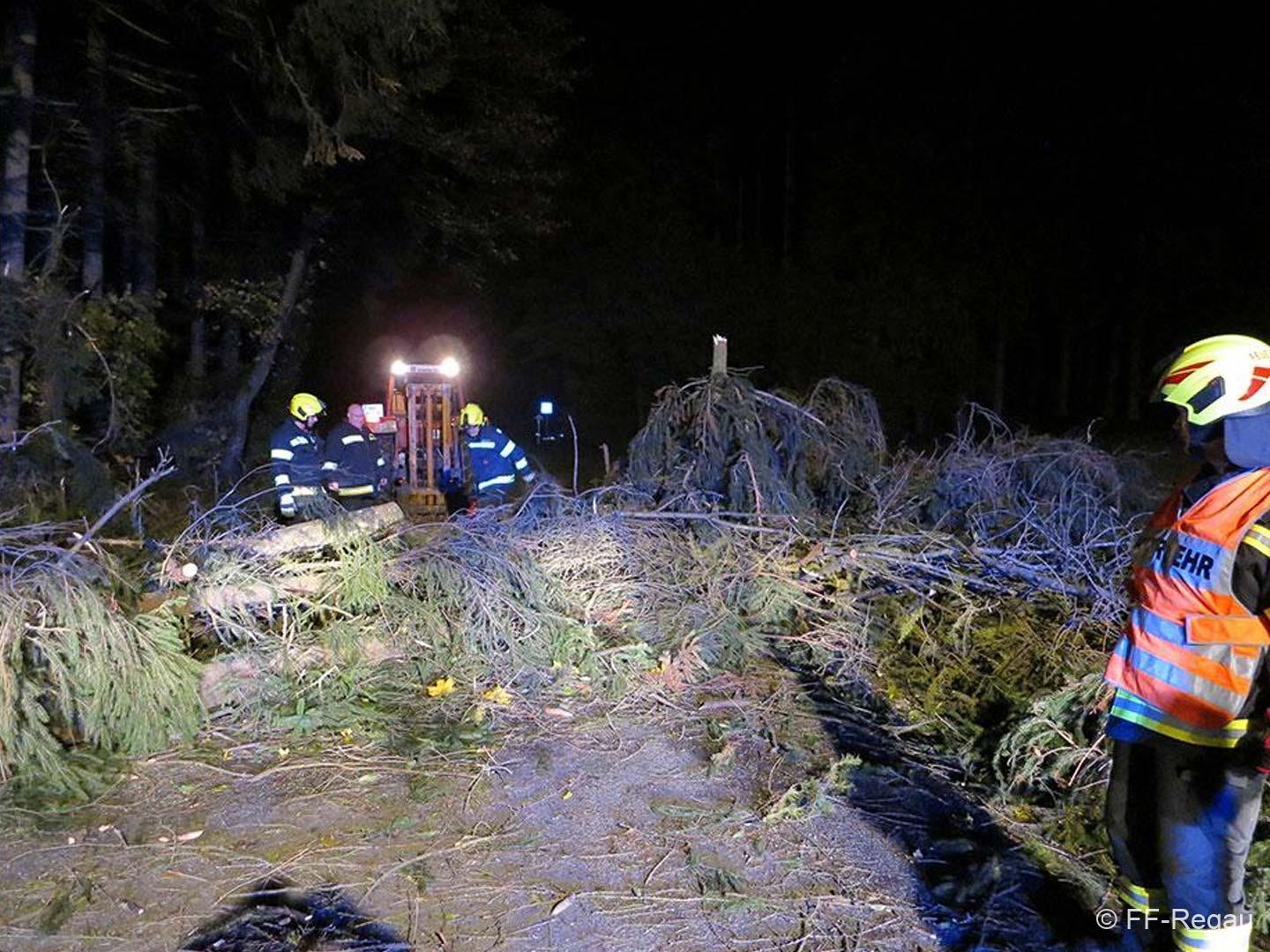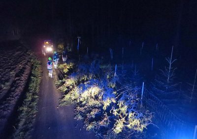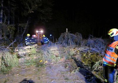 Betroffen waren vor allem die Ortschaften rund um den Buchberg – Schönberg; Lahn, Roith, Oberregau, Regau, Pürstling und Himmelreich. Zahlreiche Bäume wurden entwurzelt oder abgerissen und blockierten alle möglichen Verkehrswege. Die Bäume wurden von uns mittels Motorsägen, Seilwinden und einem Traktor aufgearbeitet und die Straßen weitesgehend wieder frei gemacht.