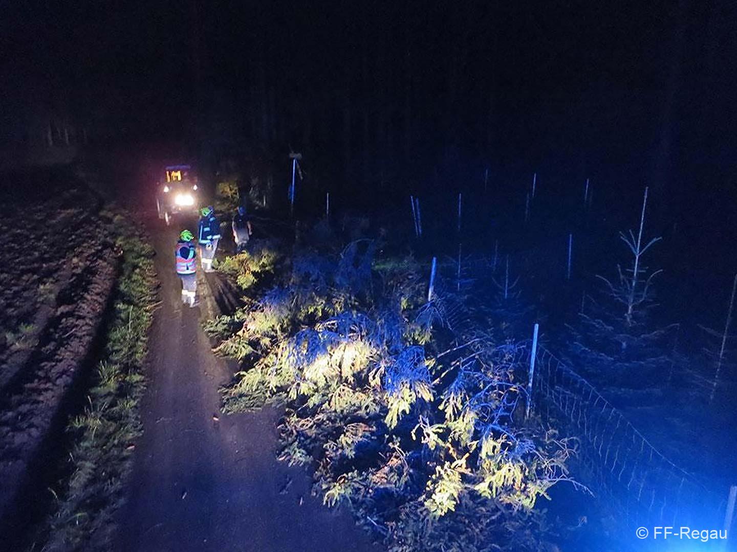 Nach einer kurzen Pause beendete gegen 4 Uhr das Aufheulen der Sirene jedoch schon wieder unseren Schlaf. Wieder galt es in Oberregau, Lahn und Schönberg die Straßen befahrbar zu machen und umgestürzte Bäume und heruntegefallene Äste zu entfernen.
