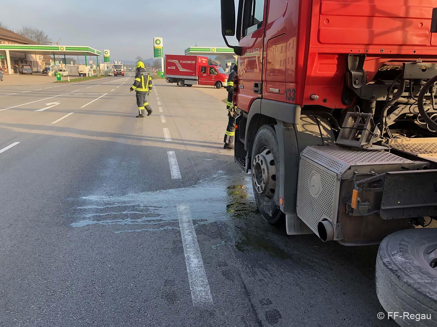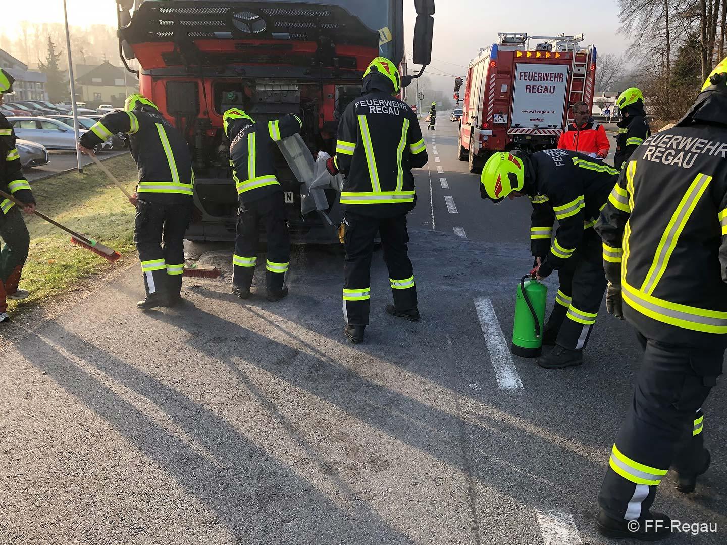 Dieses Mal zur Himmelreichkreuzung. Um 7 Uhr heulte die Sirene auf. Bei der Himmelreichkreuzung ist ein LKW am Beschleunigsstreifen (von Attnang kommen) aufgrund eines technischen Gebrechens zum Stehen gekommen. Aufgrund des Gebrechens ist eine große Menge an Kühlmittel und Öl ausgetreten. Vorbeifahrende Autofahrer haben dies gesehen und unsere Alarmierung veranlasst.
