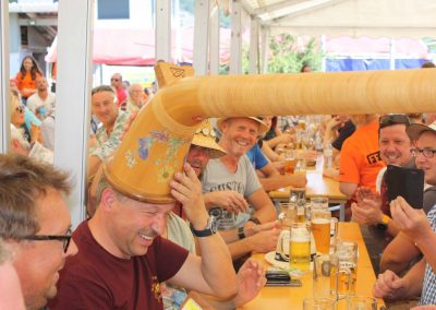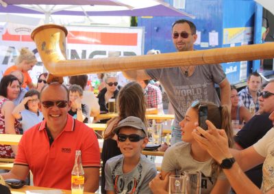 Auf jeden Fall war es der heißeste Frühschoppen, den es bis jetzt gab. Das Thermometer zeigte bis zu 38 Grad Celsius!