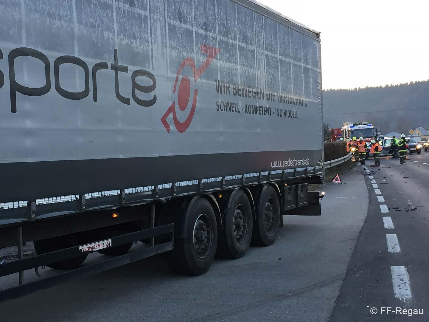 Einsatz dauerte länger als 4,5 Stunden! Um 02:18 wurden wir heute Samstag mit dem Text "Autotransporter steckt in der...