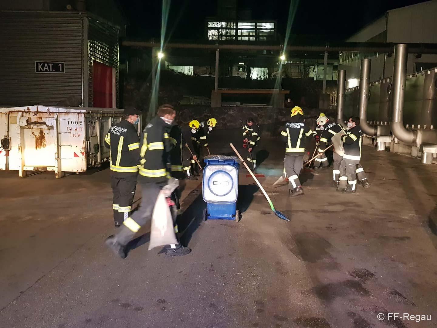 Am Betriebsgelände eines Industriebetriebs in Regau riss gestern Abend ein Hydraulikschlauch bei einem LKW. Der Schaden konnte zwar rasch behoben werden, es floss jedoch eine beträchtliche Menge an Hydrauliköl aus. Aus diesem Grund wurden wir von Beamten der PI Vöcklabruck zum Binden des Schmiermittels alarmiert. Mit Bindemittel und Bioversal konnte der Einsatz zügig abgearbeitet werden.