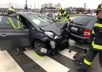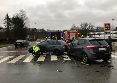 Die Polizei Vöcklabruck alarmierte uns, um die Fahrzeuge von der Fahrbahn zu bringen. Wir säuberten die Straße von herumliegenden Teilen und schoben die Unfallfahrzeuge zu einem nahegelegenen Abstellplatz. Während all dieser Arbeiten war die Himmelreichkreuzung erschwert passierbar. Eine verletzte Person wurde vom Roten Kreuz versorgt.