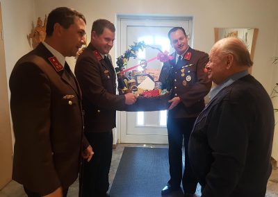 Unser Kommandant, Kommandant-Stellvertreter und Zugskommandant stellten sich bei Löschmeister (LM) Karl Weidinger als Gratulanten ein.