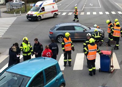 Wir haben die Aufräumarbeiten an der Unfallstelle durchgeführt und die Fahrzeuge aus dem Kreuzungsbereich gebracht.
