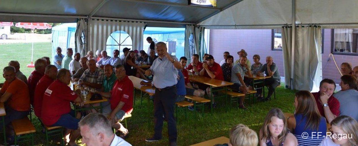 Wenn die Feuerwehr zum Feiern einlädt, dann kann der Wettergott auch ruhig schlechte Laune haben – die Regauerinnen und Regauer feiern gerne mit....