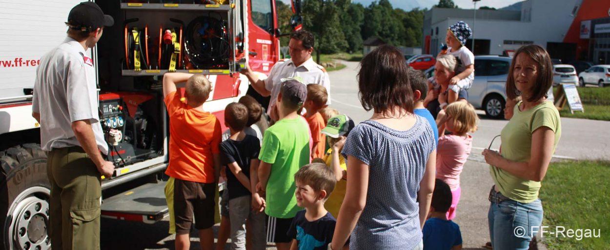 Junge Gäste zu Besuch, Ferienspaß bei der Feuerwehr - ein abwechslungsreiches Programm der Feuerwehren Regau und Rutzenmoos für die Kinder! Die...