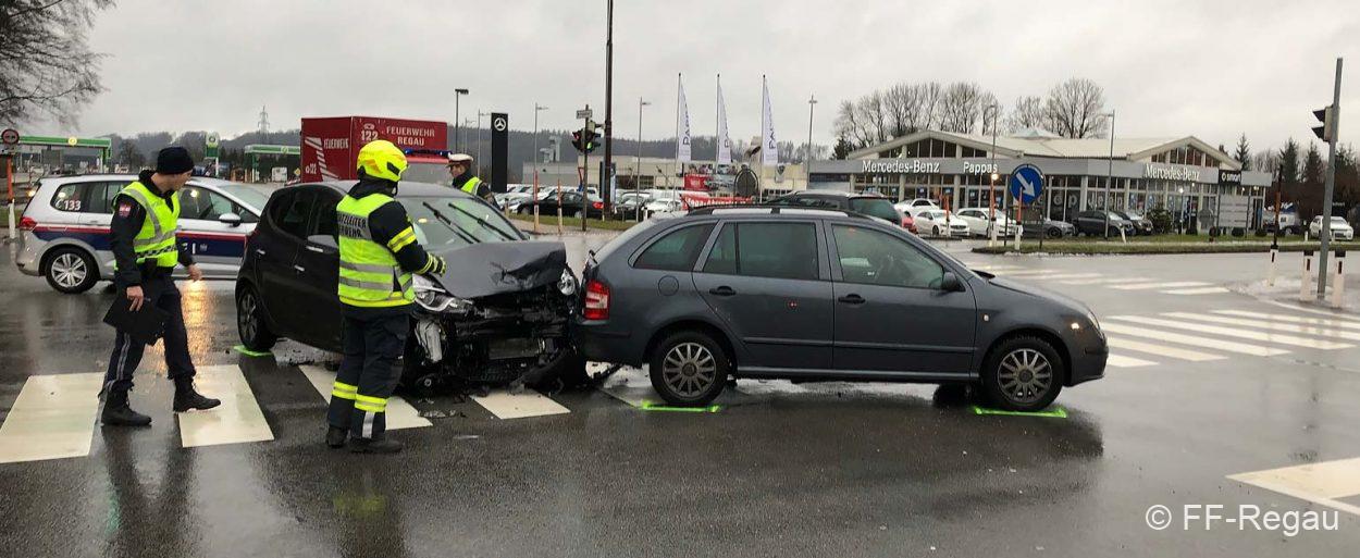 ....lautete die Einsatzmeldung am 29.12.2018 um halb 9 morgens! Beim Kreisverkehr bei der Autobahnauffahrt Regau ist ein PKW aus bisher...