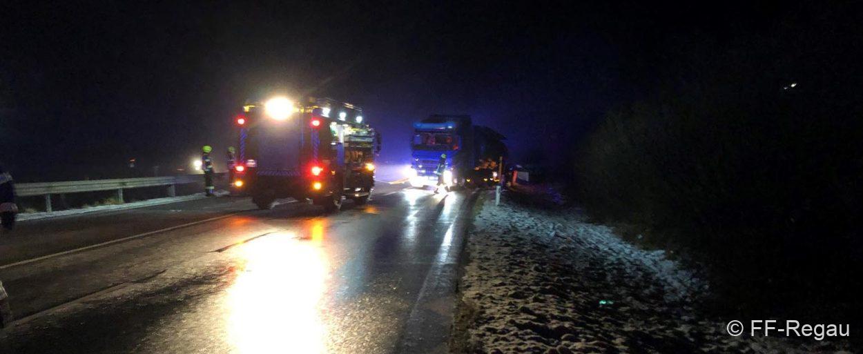 Sattelzug ist auf eisglatter Straße von Fahrbahn gerutscht! Kurz vor halb 4 Uhr wurden wir heuter von der Landeswarnzentrale per stiller...