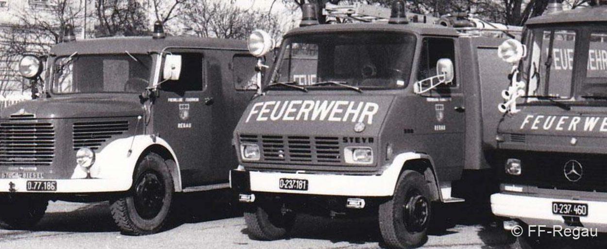 Ehemalige Fahrzeuge der FF-Regau die nach ihrem sehr guten Dienst ausgeschieden wurden. LLF (Leichtes Löschfahrzeug) mit VorbaupumpeOpel Blitz,...