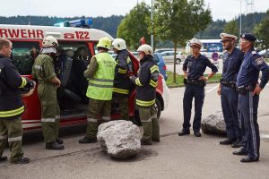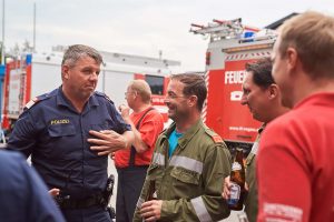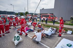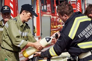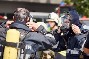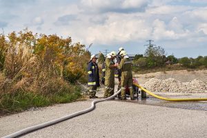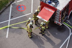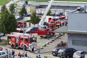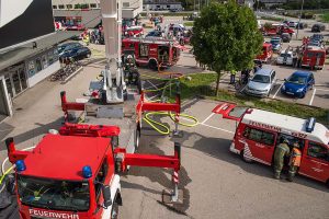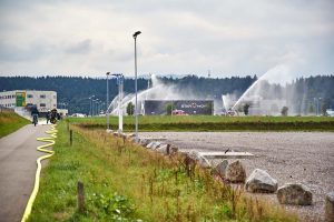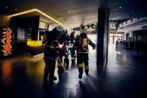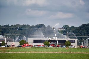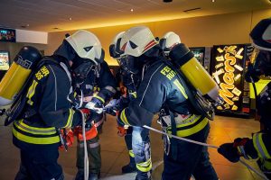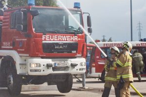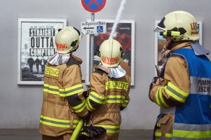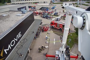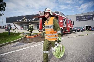 Mit einem echten Paukenschlag endete der offizielle Veranstaltungsreigen anlässlich unseres Bestandsjubiläums: „Starmovie in Flammen“ lautete die spektakuläre Annahme der Großübung auf dem Gelände des Kinocenters.