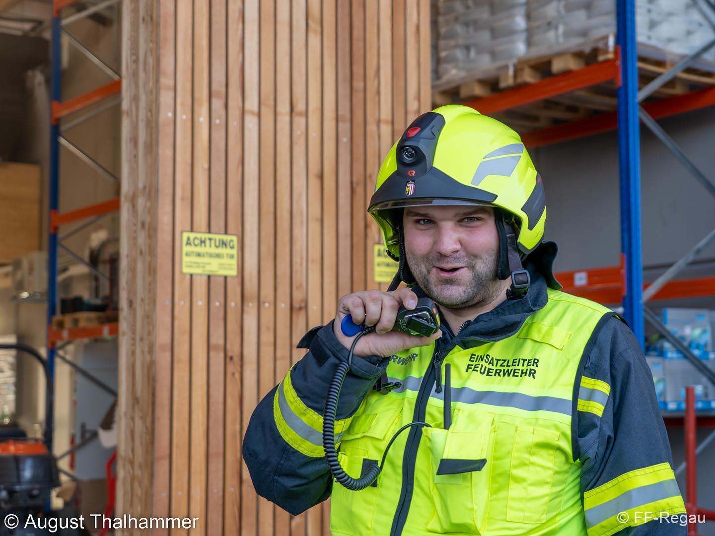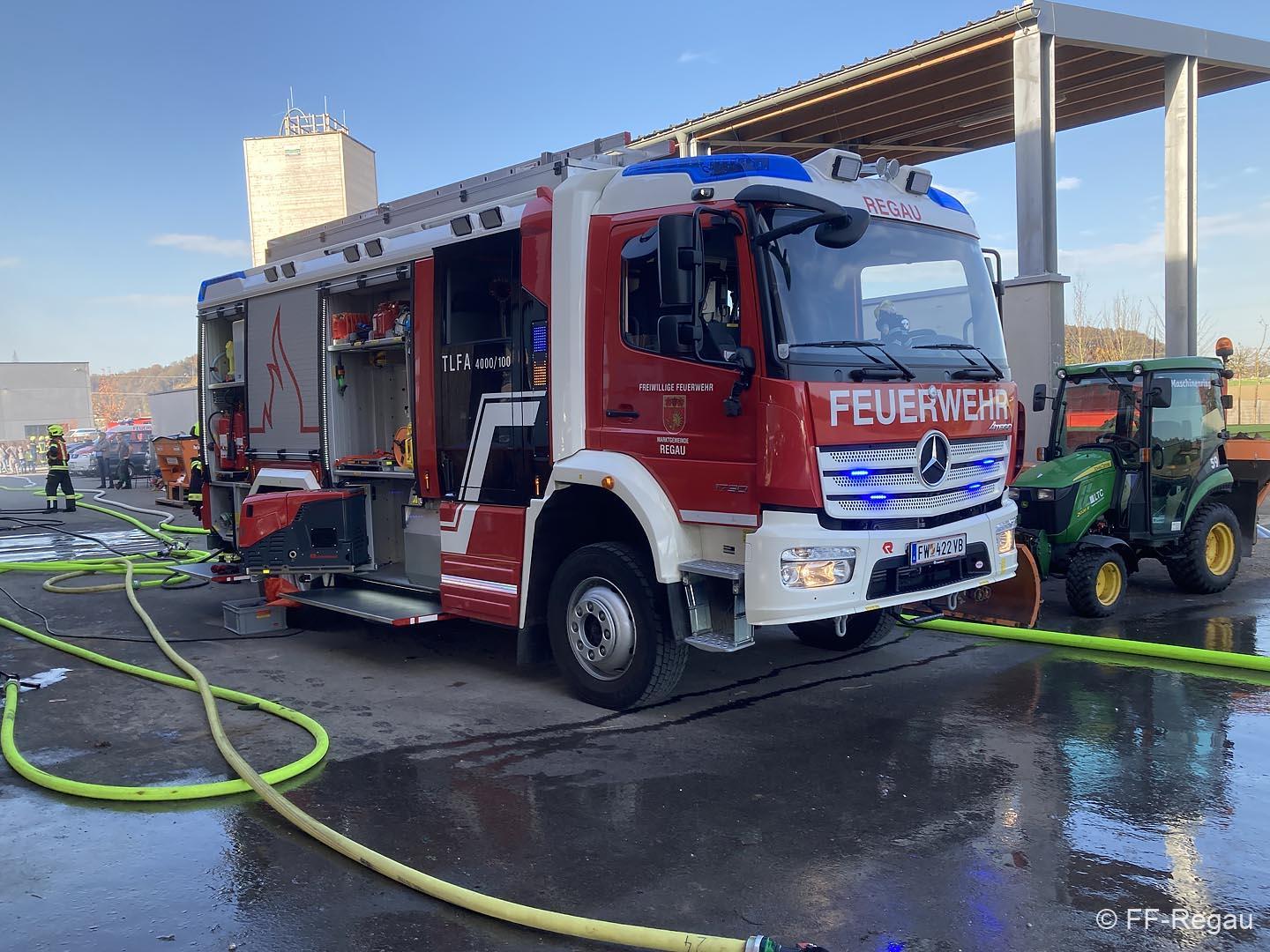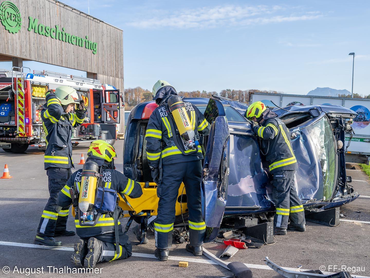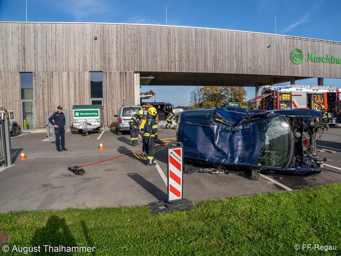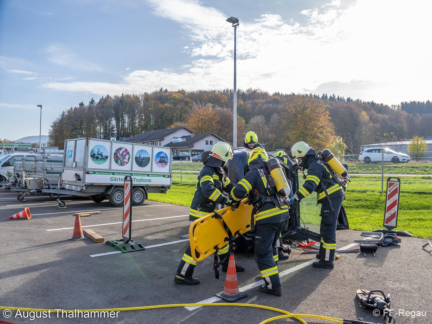 Übungsszenario war ein Brand im Chemiekalienlager im neu errichteten Gebäude vom Maschinenring. Weiters wurden Personen vermisst, der genaue Anzahl aber zunächst nicht bekannt war. Ein Atemschutztrupp der FF Regau nahm sofort die Erkundung auf und begab sich auf die Suche nach den vermissten Personen. Erschwerend dabei war der Zutritt zum Gebäude und die Unklarheit, wo sich die vermissten Personen aufhalten könnten.