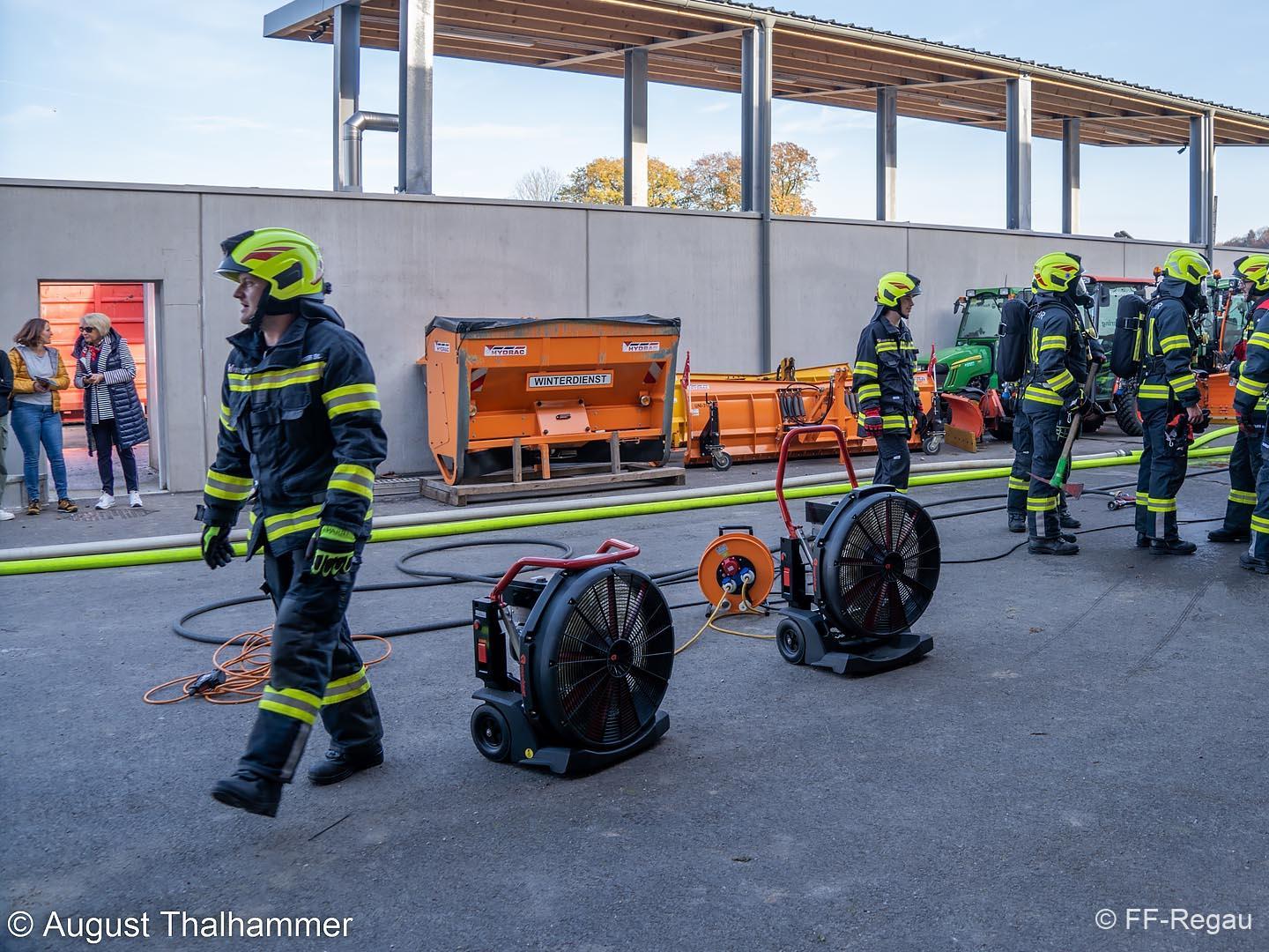 Nun war auch der zweite Atemschutztrupp im Gebäude und gemeinsam wurden die vermissten Personen gefunden und geborgen und die Brandbekämpfung in weiterer Folge erfolgreich durchgeführt. Anschließen wurde das stark verrauchte Gebäude mit den Hochleistungslüftern wieder rauchfrei gemacht.