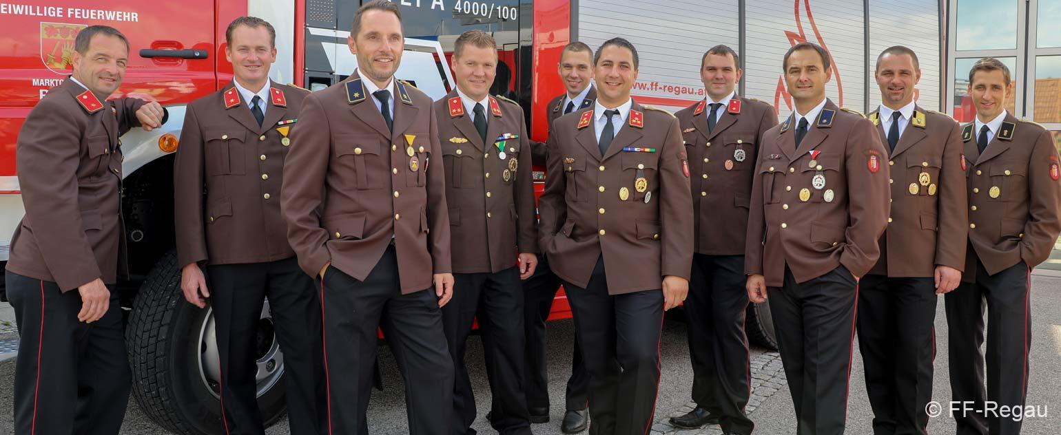 Das derzeit amtierende Kommando der Freiwilligen Feuerwehr Regau, gewählt bei der Kommandowahl am 08.04.2018, mit allen weiteren Funktionen.