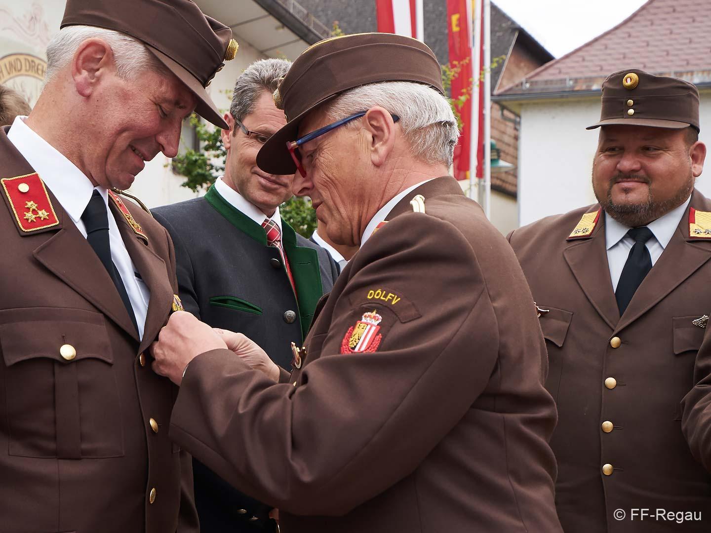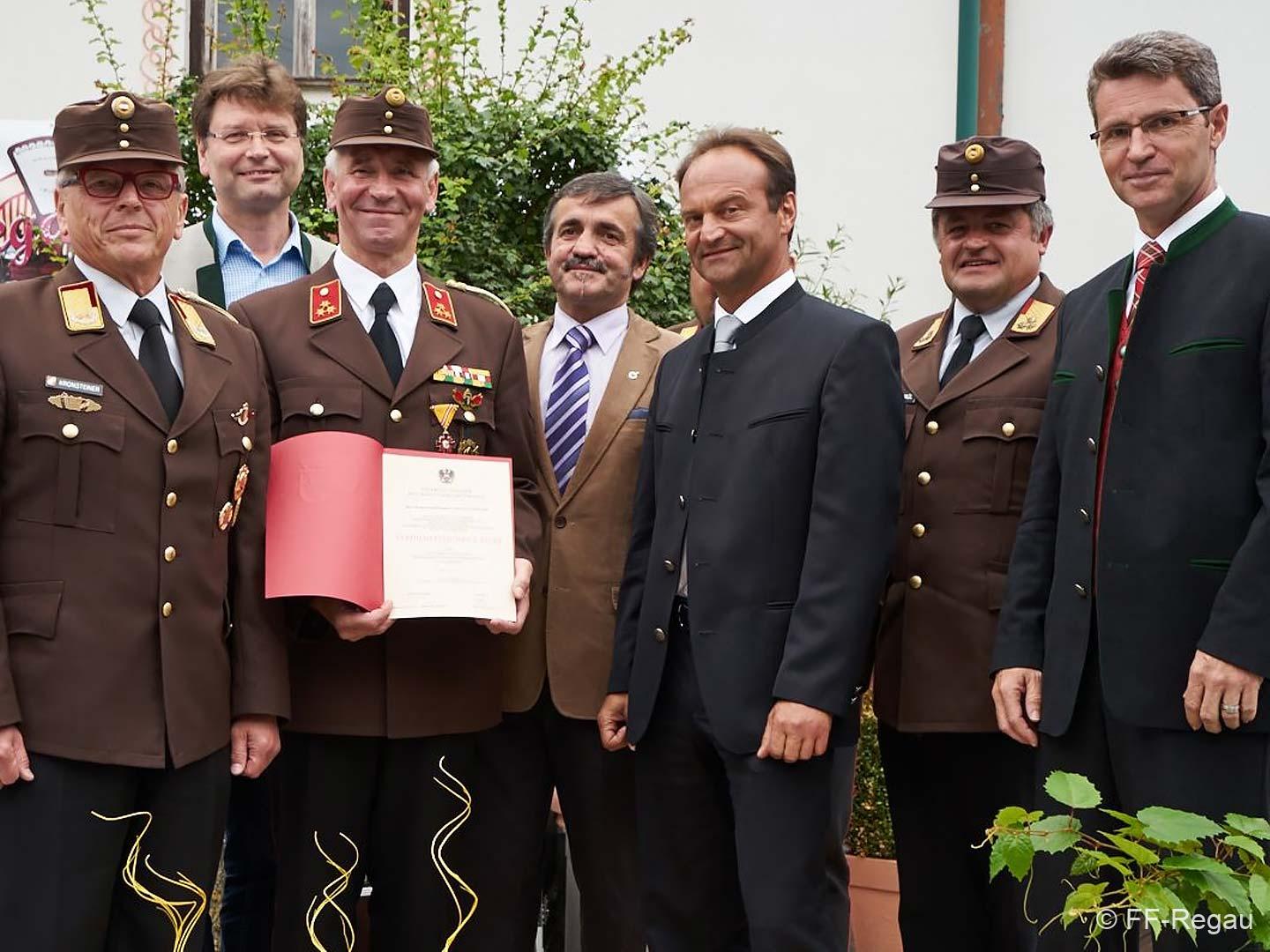 Hohe Auszeichnung für unseren Kommandant Ernst Staudinger. 150 Jahre FF Regau; 40 Jahre Ernst Staudinger bei der Feuerwehr Regau, und seit 1988 lenkt dieser als Kommandant mit Um- und Weitsicht die Geschicke der Wehr und ist damit einer der am längsten dienenden Kommandanten Oberösterreichs.