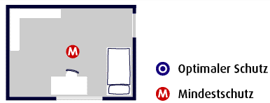 Mindest- und bei Zimmergrößen bis 60 qm auch ausreichender Schutz ist ein Rauchmelder in Zimmermitte.