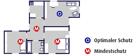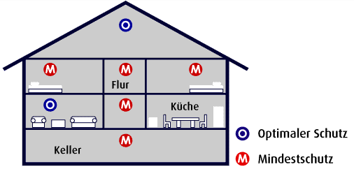 Optimalen Schutz erzielen Sie mit je einem Rauchmelder pro Zimmer und Flur. Ausnahme: Räume, in denen Wasserdampf oder eine hohe Staubbelastung vorkommen